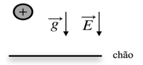 Devemos aplicar a segunda lei de Newton nas duas situações. Note que, como o vetor campo elétrico é apontado verticalmente e para baixo, a força elétrica também terá mesma direção e mesmo sentido, já que a carga é positiva. Para a primeira situação, temos: